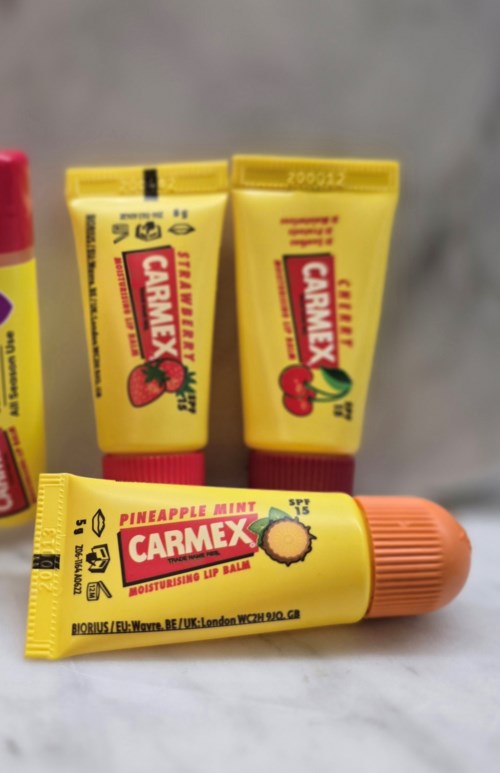 Carmex Lip Balm Minis SPF15 indeholder 3 super cute minituber, så du kan finde din favorit. De er små i størrelsen, men store i smagen: jordbær, kirsebær og ananasmynte. De har den ikoniske Carmex-tingling og SPF15, der beskytter mod solens skarpe stråler. Carmex Lip Balm Minis er designet til at berolige, nære og fugte tørre og sprukne læber. Carmex tester aldrig på dyr.