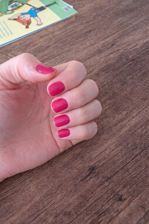 Jeg har testet neglelakken i nogle dage i hverdagen, både hjemme og på arbejdet. Den er meget klar og fin lige efter det første lag, men jeg oplevede, at to tynde lag gav den absolut bedste farve, som passede mig bedst. Men det, jeg kunne lide, var, at der blev en ret stor forskel på farven, jo flere lag man lagde. Jeg prøvede tre i alt. Børsten var nem at arbejde med og gjorde det ret enkelt at komme tæt på neglebåndene uden at det klattede for meget. Konsistensen er passende, ikke for flydende, men heller ikke tyk, hvilket gjorde, at lakken fordelte sig jævnt over neglen. Tørretiden var helt okay, især hvis man maler tynde lag. Glansen er en stor fordel ved lakken. Det ser næsten ud som om, man har lagt en topcoat, selv uden ekstra overlak. Holdbarheden var også god, efter nogle dage kunne man se lidt slid længst ude på spidserne, men farven sad stadig fint og flakede ikke i store stykker. Anmeldelsen blev udført på opdrag af Smartson - testpiloten har fået lov til at prøve produktet gratis.1 produkter i posten Super flot farve - Posten blev oprettet 9 måneder