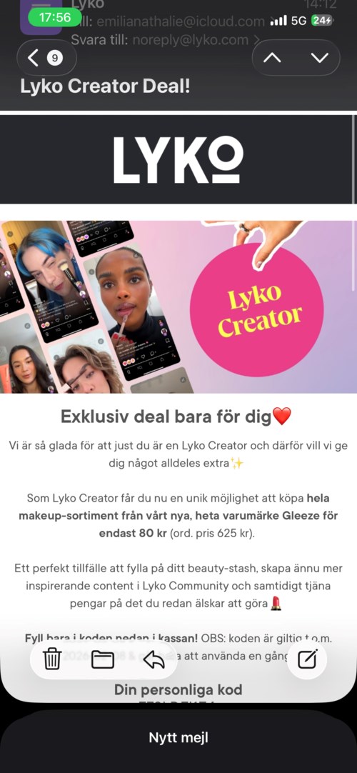 Tjek jeres mail, om I også har fået dette fantastiske tilbud!! Jeg klikkede straks hjem, det bliver så sjovt at teste🥰🥰17 produkter i posten TIPS!! 17 produkter for 80kr😍 - Brugerens rolle: Lyko Creator.Posten blev oprettet 1 dag
