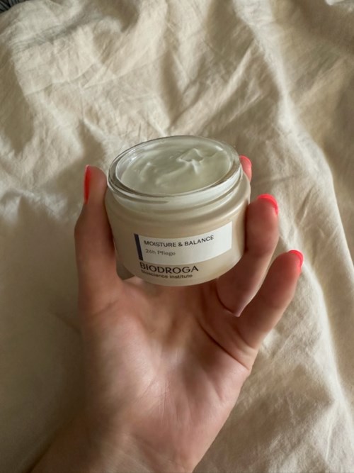 Denne ansigtscreme er fugtgivende og blødgørende, som intensivt fugter huden med en beroligende effekt. Til alle hudtyper, men især normal og kombineret hud. Cremen kommer i en flot og stilren emballage, og jeg vil beskrive konsistensen som "whipped" eller lidt mere fluffy blød. Den dufter svagt, men godt, og føles kølig og dejlig på huden. Jeg har normal til tør hud, og denne creme var virkelig perfekt. Jeg påførte cremen om aftenen, og da jeg vågnede dagen efter, føltes min hud stadig fugtet og blød. I modsætning til andre cremer, jeg har prøvet, hvor min hud enten føles tør dagen efter eller knastør, var denne helt magisk! Jeg havde virkelig ingen forventninger til dette produkt, men det er nok den bedste hudcreme, jeg nogensinde har prøvet, så jeg ville helt sikkert købe den igen! [hashtag] [hashtag]1 produkter i posten BIODROGA Moisture & balance 24h care96 visninger - Posten blev oprettet 5 månederBedømmelse: 4 ud af 5