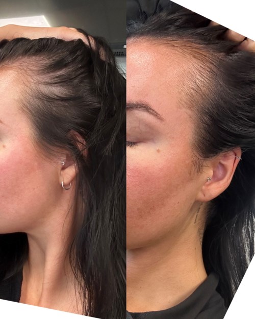 Jeg har længe været nysgerrig på dette serum, da jeg i de senere år har bemærket, at mit hår er blevet tyndere og skrøbeligere, især i tindingerne. Det var nok at trække lidt let i håret, så fulgte flere strå med fra roden, hvilket selvfølgelig har været frustrerende. Jeg besluttede mig for at give dette serum en chance og har brugt cirka to pipetter pr. påføring (hvis jeg havde brugt mere, ville jeg sikkert være blevet træt🙈) og nu er jeg i mål, og hele flasken er slut 🤩 Jeg skal indrømme, at jeg ikke har været slavisk grundig, nogle uger hver dag, andre hver anden dag og nogle gange en pause over weekenden. Men i gennemsnit har jeg brugt det regelmæssigt i cirka 8 uger, og flasken rakte lige præcis den tid for mig 🙌 Om jeg har fået mere hår er svært at sige, især da jeg på forhånd havde udvækst, og jeg har jo så lyse babyhår. Nu hvor jeg har fået en toning, er det klart, at det opleves som meget mere! Men én ting er sikkert, mit hår føles betydeligt stærkere og mindre tilbøjeligt til at falde ud 💪 Det føles virkelig som om, at serumet har gjort en forskel og holdt sit løfte. Advarsel for mine grimme før- og efterbilleder!! Super tilfreds lige nu, men jeg er også lidt nysgerrig på Resistance-serummet... Vi får se, hvad næste skridt bliver! 😉1 produkter i posten Stærkere hår - ja tak! 🙏3893 visninger- Brugerens rolle: Lyko Kundeservice.Kommentaren lades 6 månederJa, men det måske kan ses lidt alligevel! Det føles vidunderligt 😍