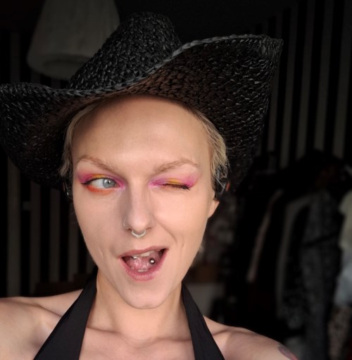 Denne #midsommer2025 blev det vist noget gammelt og tilfældigt fra garderoben, smid en cowboyhat på, platåsneakers og overdrevent farverigt makeup. Alt for at købe kattegrus 😎 Overkompensere for lort i hovedet? Moi!? Aldrig 😌 🌺 Glad Midsommer! 🌺9 produkter i looket 🌺Cowboy sommer🌺