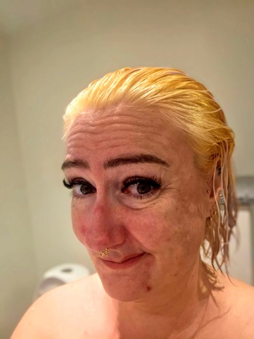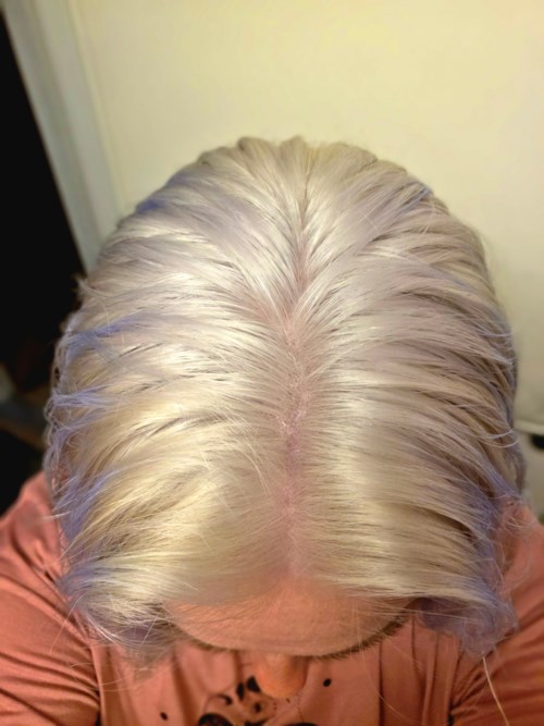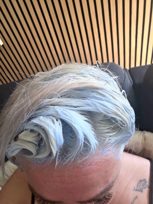 Der skulle to pakker af to omgange før jeg fik den ønskede farve. Efter første behandling jeg var så skuffet. Men efter anden pakke blev resultatet godt. Jeg brugte at blande i skål med pensel og det fungerede godt. Jeg synes dog at pulveret var over det hele efter farve var påføre.