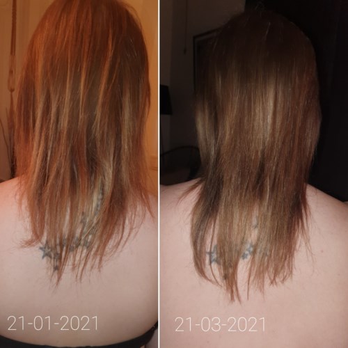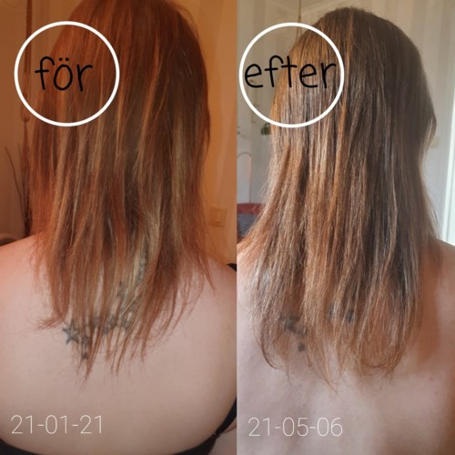 Billederne siger vel det hele! 🥳 Jeg så allerede resultater efter 3 måneder! Håret er tydeligt blevet mere sundt at se på, og se hvor langt det er blevet! Jeg har egentlig tendens til bølger/krøller i håret og skal derfor ikke børste det for meget, men det har jeg gjort og derfor ser det lidt frizzy ud! 🤦♀️ Kan let anbefale denne shampoo og balsam: - God pris 💸 - God duft 🦄 - Drøj i brug 🤏 - Holder hvad de lover! ❤