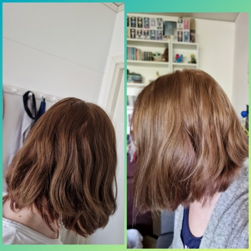 Fungerer virkelig godt. Havde mørkebrunt hår (billede 1), har tidligere haft rødt og sort. Efter et pakke er håret lysbrunt/orange (billede 2). Jeg vil tage en runde mere for at få så meget rødt pigment ud som muligt og vente en uge, før jeg farver til en askefarve. Plus at den slet ikke lugter så slemt som alle siger, lugter knap nok noget, synes jeg.
