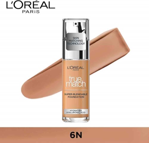 Find din True Match med L'Oréal Paris True Match Super-blendable foundation. Formlen er supernem at tone ud og tilpasser sig perfekt til din hudtone og dens tekstur for et fejlfrit look som matcher dig og ser naturligt ud. Den lette formel giver dig desuden en fejlfri dækning og strålende finish som ser naturlig ud uden at din hud ser pudderagtig ud eller at formlen sætter sig i klumper. Fugtgivende base beriget med hyaluronsyre for 24 timers fugt*.