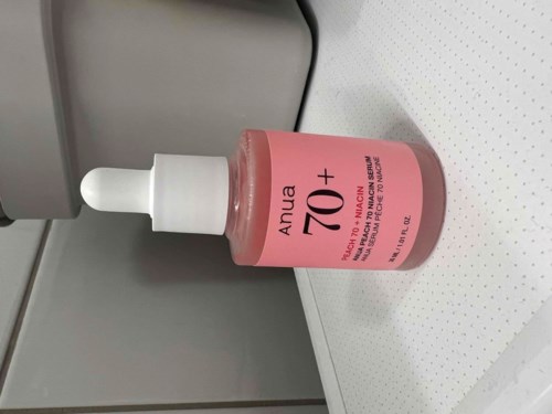 Peach 70% Niacin Serum fra det prisbelønnede mærke Anua er et glødgivende og teksturudglattende serum til alle hudtyper, især til træt hud, der lider af hyperpigmentering.