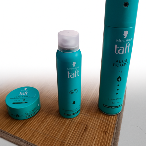 Den innovative Taft Aloe Boost-formel plejer og styrker håret for langvarig definition. Den giver øjeblikkeligt volumen ved rødderne, så håret føles fyldigere. Denne Taft-stylingspray indeholder aloe vera-kompleks samt niacinamid, og giver håret fugtet pleje samt styrker håret. Taft-stylingprodukter er skabt med veganske formler* og godkendt af PETA**.