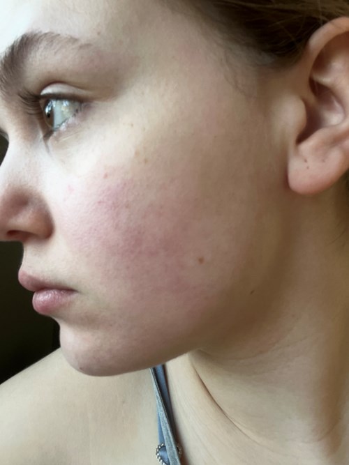 Er det almindeligt, at huden i ansigtet bliver rød og plettet efter brug? Jeg har brugt produktet om aftenen én gang, og da jeg vågnede, var mit ansigt rødt, og der var små prikker i ansigtet, som næsten ikke kan ses, men som kan mærkes.9 visninger - Posten blev oprettet for 2 dageBedømmelse: 5 ud af 5Verificeret køb