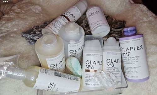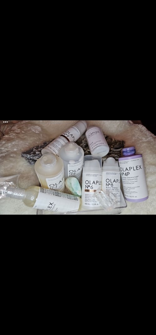 Ich liebe einfach die ganze olaplex Reihe 💜 Das einzige, was ich nicht verwenden kann, ist das Öl, es ist ziemlich tief und golden in der Farbe und hat sich auf mein neu blondiertes Haar übertragen. Das ist das einzige Negative, das ich sagen kann, aber wenn du es in den Conditioner oder die Haarmaske mischst, wird es sicher gut gehen. Das lila Shampoo ist auch sehr stark in der Farbe, also mische ich es in das Shampoo, ich finde nicht, dass das lila so pflegend ist wie das normale, das Haar wird etwas trockener. Ansonsten ist alles andere nur positiv 💜 Was ich mache, ist, das Haar 1 bis 2 Mal pro Woche zu waschen, man sollte das Haar nicht zu oft waschen, und wenn du wie ich bist, wo oft nachgefärbt wird und sonst jemand, der die Haare färbt, benutze ich die Colour Bomb Farbe, die das Haar nicht strapaziert, aber einen schönen lila Ton gibt, da ist dieses Shampoo auch schön zu verwenden. Meine Routine ist zuerst, das Haar mit dieser Flasche zu besprühen, und wenn es ein wenig gewirkt hat, nehme ich Nr. 8 als Kur. Ich wasche mit Shampoo und dann Haarmaske Nr. 3, gefolgt von Conditioner. Dann gebe ich Öl dazu, ich benutze Biosilk und Nr. 6, das eigentlich ein Leave-in Styling Produkt ist, aber es ist hervorragend, um das Haar zu schützen und zu formen, wenn du es föhnst, und dann bleibt es einfach wunderschön 🥰