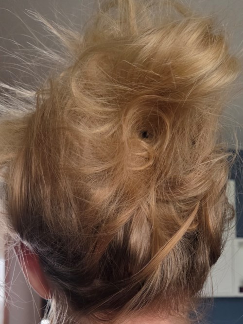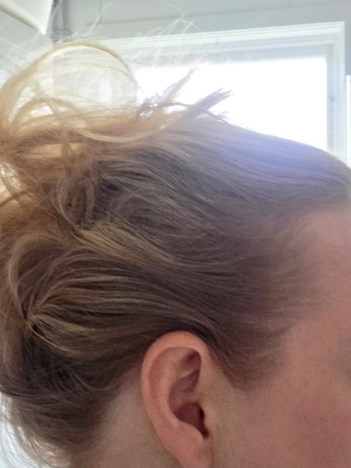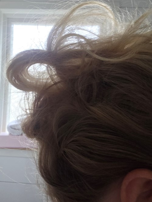 Gerade heute lief es vielleicht nicht so, wie ich es mir vorgestellt hatte, also erzähle ich von der Idee und den Fehlern, die ich gemacht habe, damit ihr es versuchen könnt, es richtig zu machen. Trockener Haarspray lässt das Haar ein wenig locken, und wenn du das Haar auseinanderziehst und sprühst, bekommst du gigantisches Volumen mit ein paar Locken, die du hochstecken kannst, sodass dein Haar viel mehr und vielleicht etwas länger wirkt. Beginne damit, einen Teil des Haares zu einem Pferdeschwanz zu binden. Verwende eine passende Größe für den Pferdeschwanz (so klein wie möglich und gerne ziemlich dünn). Hier machte ich Fehler 1. Ich nahm etwas zu wenig Haar, aber vor allem befestigte ich ihn zu hoch am Kopf. Besser, ihn mehr in der Mitte zu befestigen. Dann sprühst du das Haar. Es kann gut sein, mit dem Haar zu beginnen, das du im Pferdeschwanz befestigt hast. Ich nahm zuerst das untere und dann wurde es seltsamer. Achte darauf, das Haar gut auseinanderzuziehen. Zum Schluss steckst du eine Strähne nach der anderen mit Haarnadeln fest und achtest darauf, sie aus verschiedenen Winkeln hochzuführen. Beachte, dass viele Haarnadeln benötigt werden. Mein zweiter großer Fehler war, dass ich nur 9 Haarnadeln fand, und dann nimmst du zu große Haarmengen, und es wird eher ein Busch als elegant. Jedenfalls kann die Frisur wirklich schön werden und passt gut zu recht kurzen Frisuren bis zu etwas schulterlangem Haar, aber nicht so gut zu sehr langem Haar. Das Einzige, was du brauchst, ist ein gutes und trockenes Haarspray. Ich weiß, dass ich früher ein Haarspray von L'Oréal Professionnel benutzt habe, aber jetzt hatte ich stattdessen dieses von Björn Axén.