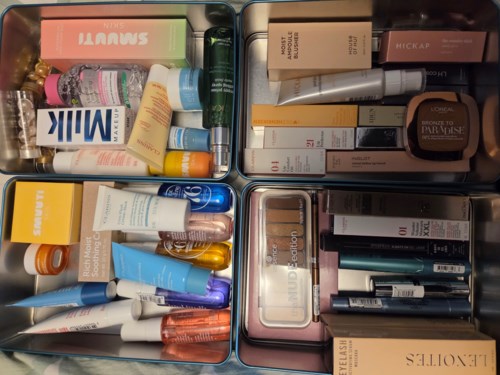 Ihr wisst, wie es ist. Man hat das, was man gerade am meisten benutzt, im Badezimmer und in der Dusche, aber die Regale reichen nicht aus. Also verstaut man ein wenig in der Reisetasche, im Schminktisch, erstellt eine große Schminktasche, weil im Badezimmerschrank kein Platz mehr ist.. oder in den Schubladen des Schminktisches, und so geht es weiter. Am Ende hat man sogar eine Tasche nur mit Sonnencreme.. und beginnt, andere Schränke und Regale zu füllen. Ja, man erstellt auch Schubladen, um Dinge zu verschenken oder bitte schön.. Kurz gesagt, es wird überall voll. Heute habe ich einen solchen Schrank nach Datum sortiert (ich möchte ja ein wenig auf die Daten achten, damit nichts abläuft, ich habe ja nicht gekauft, damit es verdirbt) und ein wenig in meiner Lieblings "Kosmetiktasche" sortiert. Ganz zufrieden mit mir selbst 😊 Wir waren auch draußen und sind 12 km Schlittschuh gelaufen auf einem der größten Seen Schwedens. Was habt ihr heute gemacht?125 Ansichten- Rolle des Benutzers: Lyko Creator.Kommentaren lades vor einer WocheAber wow! Wie talentiert du bist 💕 und so schön, das zu lesen und zu fühlen, dass ich nicht allein bin, wenn ich das Haus mit Produkten fülle 🙃 Das Badezimmer ist voll, der Schminktisch ist voll und es gibt Taschen und Kosmetiktaschen hier und da... UND ich habe einen Kleiderschrank, der sollte eigentlich mit Kleidung voll sein, aber es begann damit, dass ich ein Regal für all meine Parfums brauchte, damit mein 3-Jähriger nicht daran kommt und damit spielt.... dann füllte es sich mit allem von Haarpflege bis Makeup und bald ist es auch dort voll 😅💕 ich sollte auch mal aufräumen - und das Datieren war schlau!