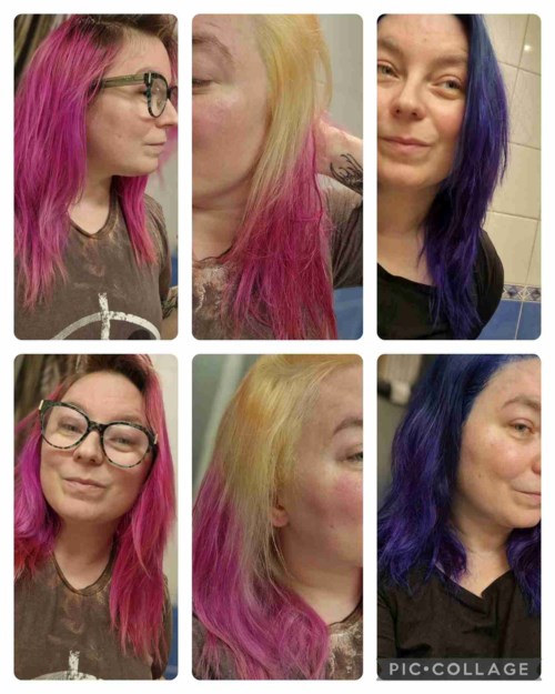 Vor der Aufhellung. Nach der Aufhellung und nach der blauen Farbe. Ich habe zuerst eine andere Farbe am Ansatz ausprobiert, aber die hat überhaupt nicht gehalten. Also musste es die ganze Zeit midnight blue sein. Ich wollte immer noch ein wenig Lila behalten. Weil ich nicht alles Rosa aufgehellt habe. Aber ich weiß auch, dass die Farbe am Ansatz nicht so gut hält wegen der bereits anderen Farbe und so.1 Produkt in dem Beitrag Midnight blue2126 Ansichten - Der Beitrag wurde 10 Monaten erstellt