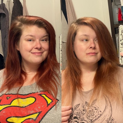Ich habe leider kein Vorher-Bild, aber ich habe schwarz/rot gefärbtes Haar und es sollte helfen, aber es gibt ÜBERHAUPT KEINEN Unterschied. Ich hatte so hohe Erwartungen, aber leider funktioniert es überhaupt nicht.50 Ansichten - Der Beitrag wurde 3 Monaten erstelltBewertung: 1 von 5
