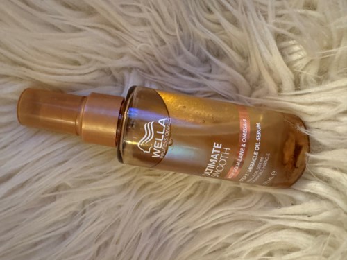 Wella "Ultimate Smooth Miracle Oil Serum" ist ein Stylingserum, das verspricht, ein weiches und glänzendes Ergebnis für frizziges und unbändiges Haar zu liefern.