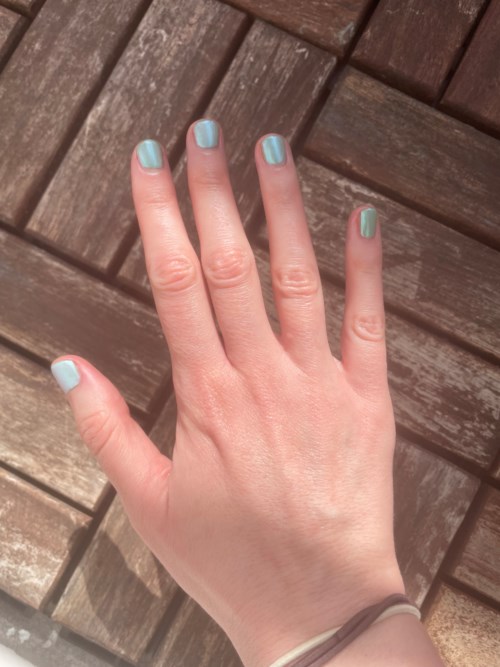 Jade Mint from IsaDora is a nail polish in a beautifully green shade. I chose to apply a semi-transparent polish with pearly shimmer (So Mesmerizing from Essence, sold out) on top of the green. The result was both a completely different color and a glossier surface than when I only applied the Jade Mint polish. Fun to try! A bit difficult to get a good result since the polish from Essence has started to get a bit thick and sticky; it’s probably nearing the end. But, as mentioned, fun to try! ☀️🥰🙏🌸⭐️💚3 products in the look Jade + pearly shimmer 🌸☀️💚18248 views- The comment was made 16 hoursNow I can see all the answers, Anna😀 My brain fog increased a lot because of the hassle🤪 Hugs🥰1 likes