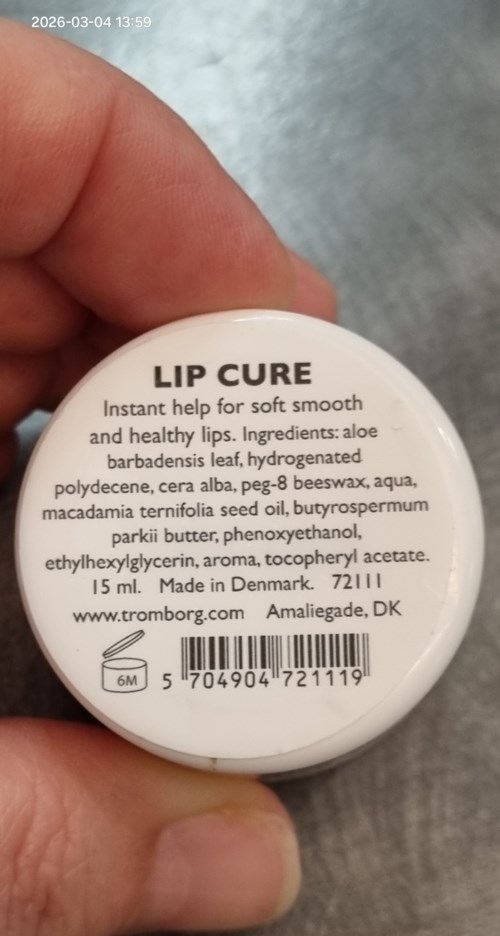I placed an order yesterday with some items, including this one. I'm posting the inci list here in the album. This white salve contains two variants of beeswax. ( The salve has the consistency of a thin cream. Don't take too much. ) It has a subtle sweet scent. The first thing I reacted to was the cheap, lightweight jar. Really bad from Tromborg. For this price, I would have expected a glass jar or a fancier, more designed, and heavier plastic jar. Two regular stickers. One on top, one underneath. That's all. No seals. No box. I don't care about the box, but no seal, yuck, ouch. Frustrating. The lid screws off way too easily. There's a risk it could unscrew itself if it gets bumped. There was an inner lid. This came off quickly when I tried to take it off. It fell on the floor. I threw it away immediately. It looked impractical. The salve is made in Denmark and lasts for six months. I will use this for a month to see what it can do. I will probably contact the company about the packaging.1 product in post Inci list & some thoughts.64 views - The post was made 1 week