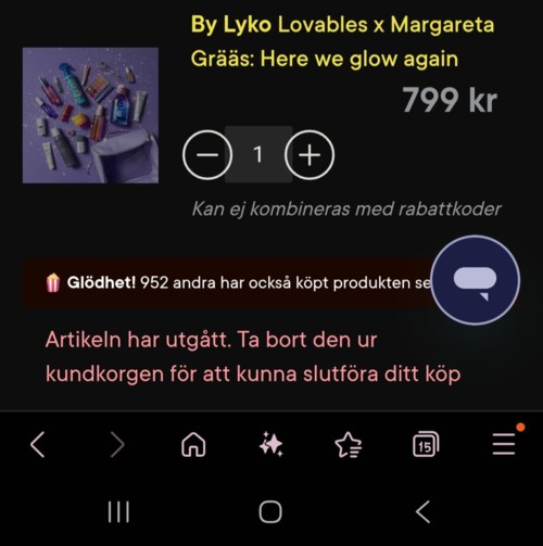 It can't just be like this that Lyko releases only this many? 952 pieces? I went into the cart after it was sold out to remove it from the cart, and it says so. No wonder it sells out so fast in that case..1 product in post Getting boxes?1056 views- The user's roll: Lyko Creator. The comment was made 1 monthI got in line around 8:30 and had spot 1400 something in line, I got a 🤗 So there must have been quite a few. Sorry you didn't get one, I was really disappointed when I couldn't get another lovables so I understand your disappointment ❤️