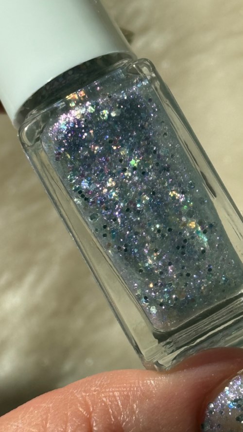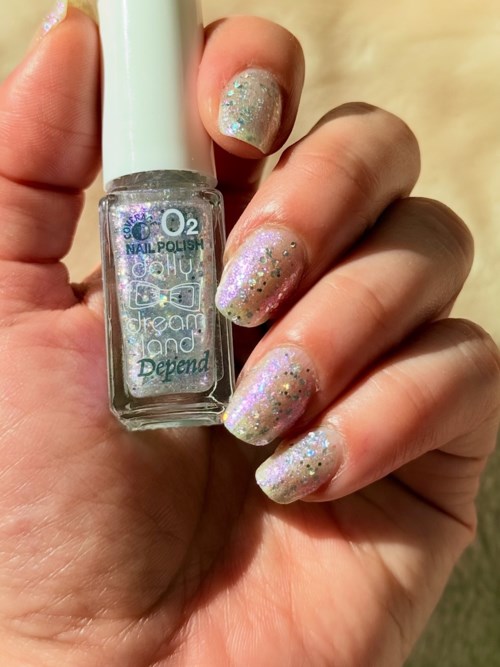 Candy Floss Cloud from @dependcosmetic limited edition Dolly Dreamland collection. An iridescent violet shimmer base with larger silver halo glitter. A pretty and playful shade. I think it looks very similar to ”With A Wildside ” from their Gel IQ line.