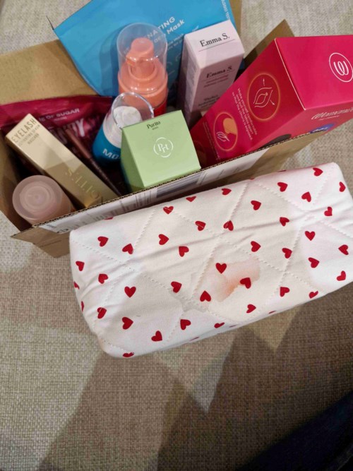 I was happy to snatch this since it sold out quickly, good selection of products to try. However, the makeup bag was stained, maybe some product leaked. I'm rather sad about that. I wonder if the makeup bag is machine washable to remove the stain?1 product in post Great but makeup bag stained - The post was made 1 years