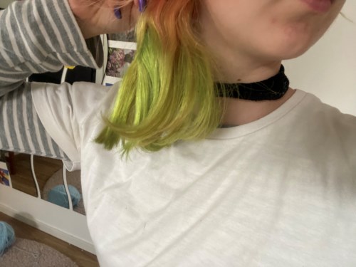 Fin färg men den håller inte alls länge!! Jag gillar hur färgen blev när jag hade färgat det men nu (4 dagar senare) är det redan en helt annan nyans, mycket ljusare och mer persikofärgad. OBS jag har inte ens tvättat mitt hår sen färgningen så den ljusnar oavsett vad man gör. Första två dagarna var den jättefin!! Men som sagt nu är den mer orange medans rötterna är samma färg som från början. Det är därför jag bara ger den 3 stjärnor. Jag färgade mitt hår direkt efter att jag blekt det och mitt hår var VÄLDIGT ljust. Sedan tog jag ca 2:1 balsam och färg, dvs dubbelt så mycket balsam som färg tills jag fick en bra nyans. Jag lät färgen sitta i 1 h innan jag sköljde med kallt vatten och använde shampoo och balsam för färgat hår. Obs jag behövde ha 1.5 burk färg till mitt medellånga hår, och obs att jag använde mycket balsam och dessutom inte färgade allt mitt hår så du lär behöva många fler burkar om du ska färga ditt hår! Obs de tre första bilderna är från samma dag som färgningen, medan de andra är från nu (4 dagar senare). Man ser inte jättestor skillnad på bilderna men lita på mig att färgen är mycket ljusare och tråkigare nu. Jag hoppas att min recension har hjälpt! #tävling