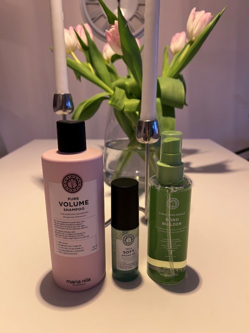 I have long been interested in Maria Nila's hair products and felt that it was now time to try out some different products. With tips from my hairdresser, I chose their Volume shampoo as I have a scalp that easily gets oily and weighed down by multiple shampoos. I can easily say that I fell completely in love with the scent right away! 😍 it has a fresh and floral scent of, among other things, lemon and hyacinth that makes me think of warm summer days 🪻🍋 a big plus is also the product's UV-protective properties ☀️ Also, their True Soft Argan Oil and leave-in spray Structure Repair Bond Builder were two favorites I got hooked on after my hairdresser visit. Since many oils in a slightly thicker consistency have weighed my hair down early, I was worried that this one would do the same. But how wrong I was! The oil distributes easily and melts in like butter in the hair 😍 has a fantastic sweet scent of vanilla, jasmine, and rose and reminds me a lot of jelly raspberries 🌹 The leave-in spray gave my hair a wonderful glow and was so easy to apply with the spray nozzle! This product has completely made me switch from creamy leave-in products to spray bottles instead. The product distributes evenly over the hair and creates a protective barrier that protects, adds shine, and makes the hair resilient. It has a scent of pineapple leaves, green apple, and water lily, which gives a heeelt enchanting scent combination that lasts long in the hair! ✨🍍🍏 A big plus was also that it has heat protection up to 230 degrees and can be used on days when the hair gets air-dried. All three of these products were absolutely fantastic and completely exceeded my expectations! These favorites will always be in my toiletry bag and repurchased! 🌸 #marianila #volumeschampo #softarganoil #structurerepairbondbuilder3 products in post Glowing Dream Hair!59 views- The comment was made 4 hoursI love their volume series😍 my hair feels like a salon visit after shampooing🥹💕1 likes