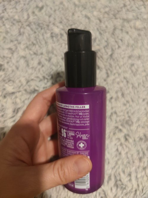 I used Schwarzkopf Gliss Full Hair Wonder Length Filler for my damaged hair from permanent hair dye and the aftereffects, and I am very satisfied with the result. It made my hair feel stronger, more resistant to the environment, and repairs due to the haptIQ system and caffeine. It is easy to apply, after a shower is my preferred way since it’s easy. You pump it a few times depending on how thick and long the hair is. In my case, I used about 5 pumps. It doesn’t need to be rinsed out, and the hair can be brushed and dried after a few minutes. It has a specific musk scent, and the bottle has a thoughtful design and durable material. 96% is made with natural ingredients. I like that the product is made in Europe, not tested on animals, and silicone-free. I highly recommend it!1 product in post Highly recommend!436 views - The post was made 8 monthsRating: 5 out of 5