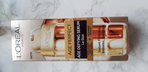 Age Perfect Le Duo Age Defying serum from L´Oréal Paris is a serum suitable for all skin types, including sensitive skin. For the first time, L’Oreal Paris brings together the efficacy of 2 serums in 1 to reduce signs of ageing. The formulas are separated into two chambers, to maintain optimal freshness for every drop. A velvety nourishing cream provides the power of Collagen Peptide fractions to boost skin firmness. While, a lightweight caramel emulsion cream contains essential Vitamin C* & B3 to boost skin radiance and even the skintone. With each use, actives are freshly mixed, uniting at the optimal concentration thanks to the double tip pump. The result? Reduce skin ageing signs in just 7 days* with the efficacy of 2 serums in 1.