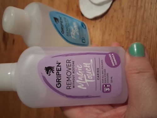 GRIPEN® Remover Magic Touch is an acetone-free nail polish remover designed to be both effective and gentle on your nails and cuticles, featuring an updated formula without any fragrance. On Gripen's 4-point scale, this product ranks a solid 3 in terms of effectiveness.