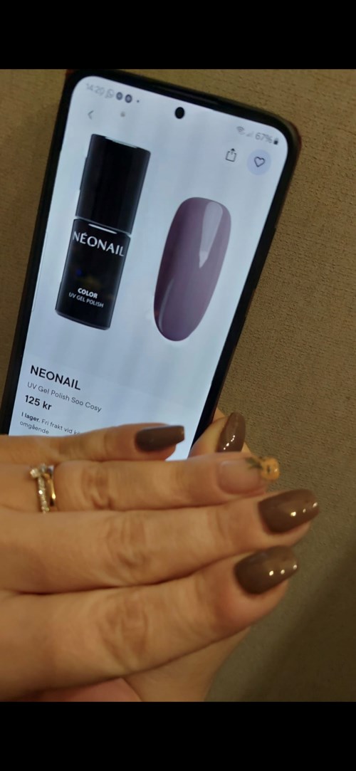 I am an experienced and loyal gel polish user, have been for the last 10-15 years. Note that I do not build my nails but only polish my natural nails. What do I think of Neonail? When it comes to quality, I want to give the polishes 5 stars🌟 without hesitation. It has a light creamy consistency with good coverage already at the first application, although 2 applications are recommended for absolute full coverage. When applying, the product sits nicely around the nail edges without running over the nail. Once a layer of Neonail has been applied to the nail, it only takes a second for the edges after the brush to disappear, giving the nail a smooth and even surface that molds itself to the nail🤩🤩 The product is easy to work with, and since I have not experienced the product running over the nail or the product "crawling" back up the nail again, Neonail allows for polishing several fingers at the same time before curing, and still getting a nice result. Which I think is great and super convenient🌟🌟 The polish also has good durability over time👍 The brush is a bit old school and of a narrower model. It is flexible and easy to work with👅 I first bought a polish to test this brand. When I then realized how lovely the product was to work with and how nice and durable the result became, I realized that there is only one negative aspect.... ..... The shades do not match when compared to the product images😬 Soo Cosy I thought would go towards the purple side. Warming hug looks like it goes towards the green side. Sexy red and shine the moments are the ones I consider to be closest to the product images 😂 Unfortunately, the shades weigh heavily for me, I am a person who always thinks about the shades, about nails, about clothes, about hair color, etc. But as I said, the quality gets top marks from me💫👏💫 Important input also for those who can be bothered to read, think about that polish, product, and brush cure in UV light. Draw the curtains so you are not sitting in daylight as this cures any brushes etc. 😃😃
