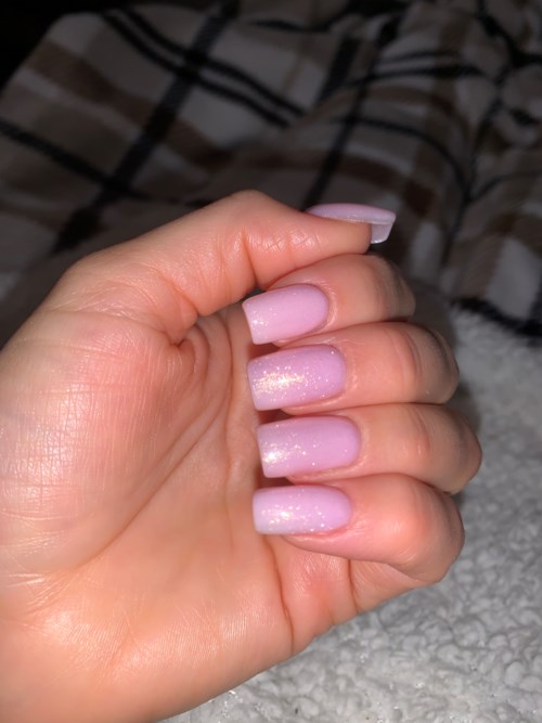 I think the color was super pretty, a light «neutral» pink color with lots of glitter, but the polish was very thin and hard to apply without it sliding out quickly around the nail