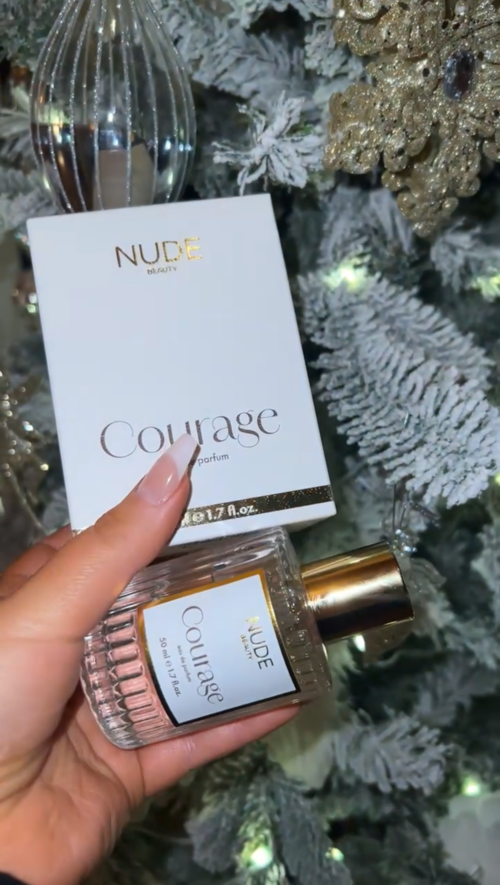 Nude Beauty Courage EdP. With this fragrance, Isabel sought to create a perfume that reminds us all of our inner strength, inspiring us to be courageous and believe in ourselves. The name "Courage" was chosen because Isabel wants the fragrance to be a symbol of confidence and resilience, a reminder that courage resides within each of us.