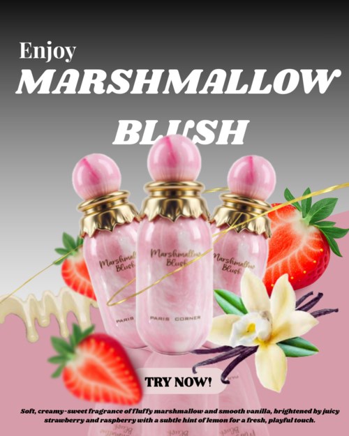 Marshmallow Blush Eau de Parfum 100 ml by Paris Corner is a playful yet refined unisex gourmand-floral fragrance, launched in 2025 for those who adore sweetness with a touch of sophistication. It captures the nostalgic charm of candy-shop indulgence while remaining elegant enough for everyday wear.