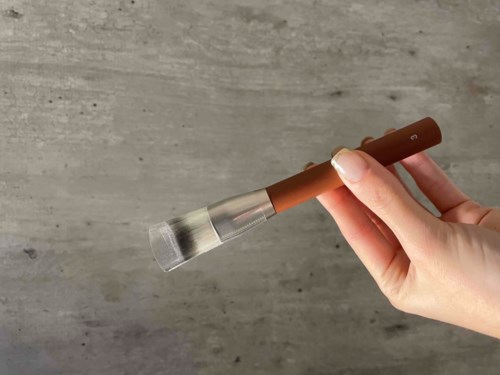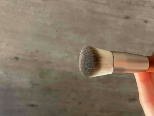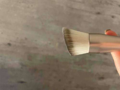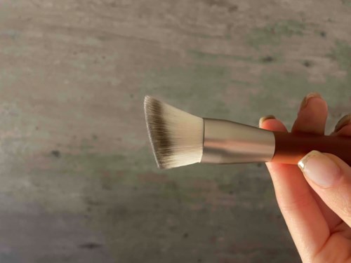 Sweep makeup onto skin using the flat, angled side. Blend along the hairline, jawline and around the nose with the tapered side. Clean regularly with mild soap and water to remove makeup residue from bristles.