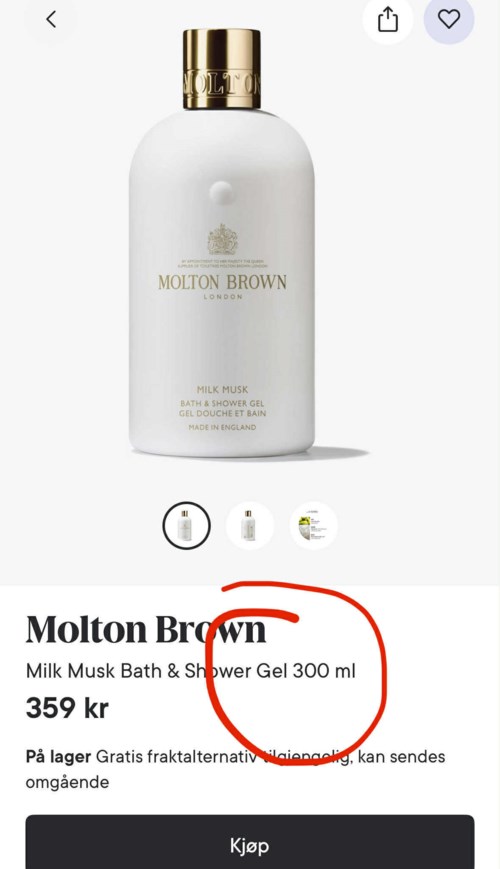 In the product review, it states 300ml, this is not correct. The bottle contains 290ml, which can be proven by the picture I have attached. To deceive customers is not fortunate. An apology is a bit like putting a band-aid on a bleeding wound. Shame on you :) The content, however, is a clear 5/5. Smells fresh, light, mildly floral, and a hint of baby powder. Milk is also a clear scent note. Unisex, but leaning more towards the sweet side of the scent. The content is clear/translucent. The bottle comes with a flip cap, practical and easy to dispense. Lathers well, and is very economical in use. Molton Brown has been a staple repurchase for me since 2021! So far, I categorize Milk Musk as a top 3 of all the shower gels I have tried so far. And I have tried ALL. A safe purchase for both genders, both for Christmas and birthdays. Attaching similar soap, in 300ml for comparison. #lykoreview