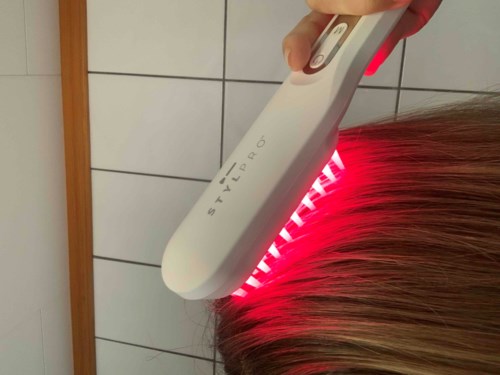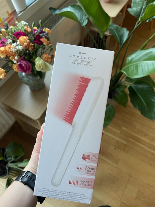 As a Lyko influencer, I have tried StylPro's new hair brush with red light that is supposed to stimulate hair growth in the scalp. The brush has soft silicone bristles and a massage function, and it feels like a good product, easy to use, and it charges with USB-C. However, the battery life is very short, only a couple of minutes. I became curious about red light therapy and looked up the research (and there was a lot of research) that shows that red light can stimulate hair follicles and cells, increase hair density, and promote hair growth. There have been large studies showing significant growth with this 680 nm treatment. However, I personally have not noticed any difference yet, partly because the time is too short (3 weeks), but also because it was difficult for me to quantify growth since I still have quite a lot of hair. However, I believe it is a good product for those who are starting to experience hair loss, both considering what the research shows and that it is well-designed! [hashtag] [hashtag] - Most helpful negativeThe post was made 4 monthsRating: 1 out of 5Verifierad testare
