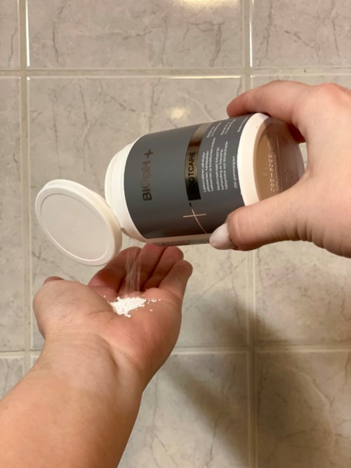 BIOpH on lääkinnällinen jalkakylpy jalkasienen, halkeamien ja kovettumien hoitoon. Hoito kaadetaan rentouttavaan jalkakylpyyn.