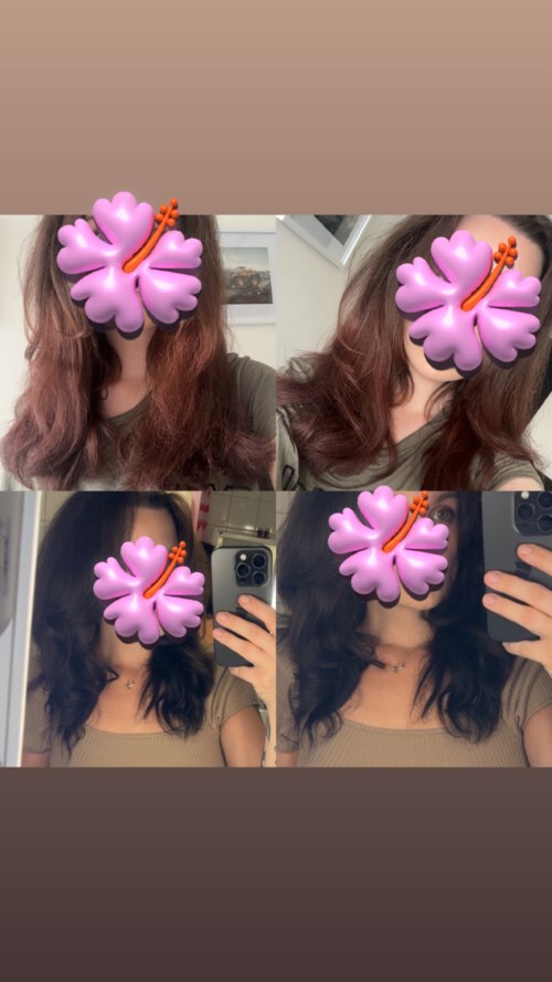 Rakastan tätä tuotetta! Se tuoksuu hyvältä, toimii hyvin ja sillä on kaunis väri. Käytän 4.10 cacao intense, koska haluan syvän ja täyteläisen tummanruskean sävyn, joka ei ole lämmin. Väri pysyy hyvin ja kestää monta pesua! Valitettavasti minulla on muutama negatiivinen asia! 1. Se ei ole erityisen riittoisa, joten paksussa hiuksessani (nyt vain puolipitkät hiukset, ennen oli vyötärölle asti) se ei riitä kovin moneksi kerraksi. Mikä tulee KALLIKSI! 2. Pumpupullo ei saa viimeistä pois, mielestäni, joten minun täytyy avata se tai lyödä sitä jotain kovaa vastaan, kuten joskus täytyy tehdä pumppupullojen kanssa. 3. Viimeisenä mutta ei vähäisimpänä, uskon, etten oikein kestä tätä tuotetta, koska se kutittaa käytön jälkeen. Onko teillä Lyko:ssa vinkkiä jostain, joka antaa saman täyteläisen ja kiiltävän, viileän tuloksen? Kuva näyttää ylhäällä ennen ja alhaalla jälkeen, leikkasin ja värjäsin kampaajalla, ja väri, joka oli, hävisi uskomattoman nopeasti, enkä tykännyt ollenkaan siitä lämpimästä, mikä oli. En voi antaa 5/5 tähteä, koska kolme negatiivista asiaa vievät siitä vähän pois, muuten tämä tuote olisi ollut 5/5.1 product in post 4.10 cacao intense - Viesti luotiin 5 kuukautta sittenArvosana: 2 / 5Vahvistettu ostaja