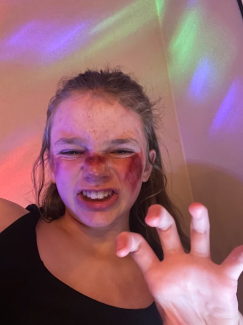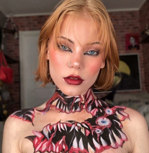 #Halloween24 Mun look tälle vuodelle, yksinkertainen look, joka näyttää siltä, että mulla on haavoja kasvoissa💋🤩yhdistettynä paitaan ja mustiin hameeseen✨ - Viesti luotiin 1 vuotta sitten