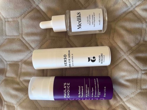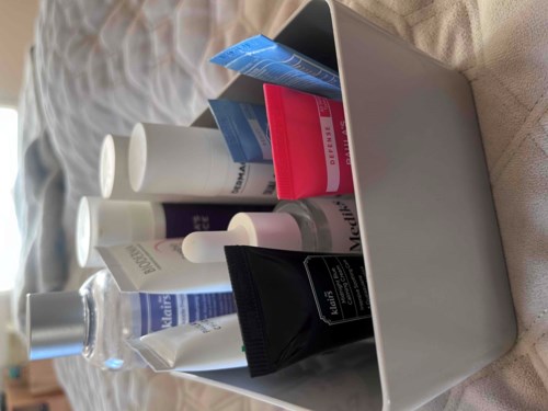Onko teillä kuten minulla erilaisia laatikoita kylpyhuoneessa? 🙈 Tämä on laatikko, jota käytän eniten, joka päivä tai muutamana päivänä viikossa. 1. Käytän Klairsin kosteustoneria joka päivä ja rakastan sitä! 2. Käytän azelaahappoa muutamana päivänä viikossa, Paulan valinta on suosikkini, mutta Dermaceutic on täydellinen, kun yhdistän sen Retinoliin tai muihin aktiivisiin aineisiin. 3. Retinoli ja peptidit - Paulan valinta kasvoilla, Verso silmien ympärillä ja peptidit kaulalla, koska kaulani on vaikeaa sietää Retinolia 🥲 4. Yövoide & päivävoide - Bioderma päivällä punoituksen vähentämiseksi, Klairs on uusi suosikki yöllä. 5. Aurinkosuoja, jos menen ulos, kun on aurinkoista! 🌞 Rakastan näitä Paulan valinnasta, lähes ainoat, jotka toimivat minulle!