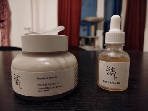Sain kotiin Ground Rice and honey glow maskin ja Glow seerumin. Maskin jälkeen ihoni oli pehmeä kuin silkki, ja kolme suositeltua tippaa seerumia riitti hyvin. En kokenut ärsytystä tai muuta, joten nyt odotan vain glow'n vaikutusta.1 product in post Beauty of Joseon5004 näyttöä