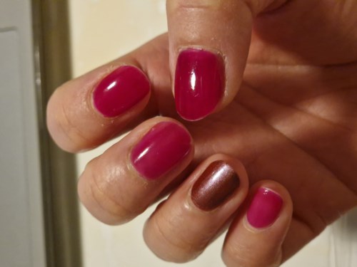 Olen testannut tätä kimaltelevaa lakkaa Essieltä värissä Frost yourself viikon aikana. Rakastan helppoa kimalletta ja glitteriä, joten tämä väri on kymppipiste minulle. Kuvaan sen pehmeäksi vaaleanpunaiseksi sävyksi, jossa on kultaisia ja vaaleanpunaisia glittereitä. Salamalla kamerassa näkyy terävä vaaleanpunainen vivahde. Väri oli helppo saada tasaisesti kynsille, kuivui nopeasti ja oli helppo maalata useita kerroksia. Olin oikein tyytyväinen kahteen kerrokseen. Lopputulos on hillitty mutta ylellinen. Olen myös testannut Essie gel couture -päällyslakkaa yhdessä Frost yourselfin kanssa viikon aikana ja olen vaikuttunut ennen kaikkea kiillosta. Päällyslakka antaa täyteläisen, geelimäisen pinnan ilman UV-lamppua ja vahvistaa sekä väriä että kimallusta kauniilla tavalla. Se on helppo levittää, ja mielestäni sivellin on koossa, joka tekee tasaisen kerroksen saamisesta helppoa. Arvostelu tehtiin Smartsonin toimeksiannosta - testipilotti sai kokeilla tuotetta ilmaiseksi.1 product in post Ihana rose chrome -uni & hyvä päällyslakka23 näyttöä - Viesti luotiin 9 tuntia sittenArvosana: 4 / 5