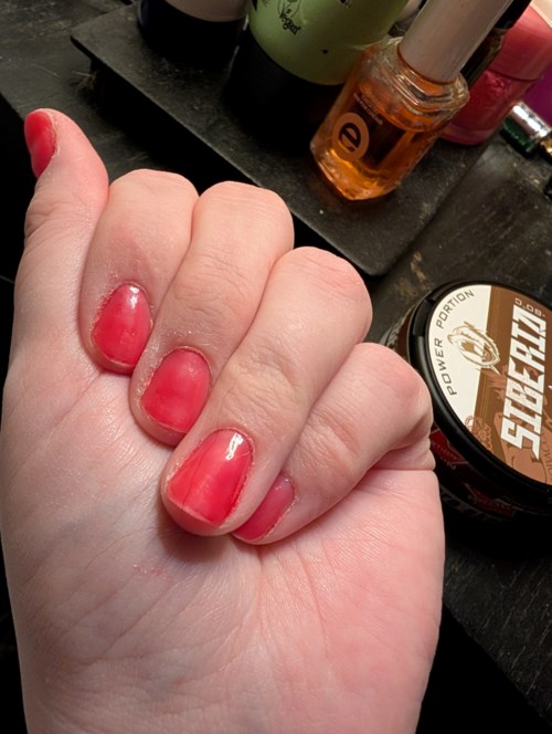 Yhden kerroksen jälkeen kynsilakka oli läpinäkyvää ja väri hieman epätasaista. Kahden kerroksen jälkeen se oli edelleen hieman läpinäkyvää, mutta täydellinen sinulle, joka et halua täysin peittävää lopputulosta (pikkusormi ja nimettömä). Kolmen kerroksen jälkeen väri oli huomattavasti peittävämpi. Kuva näyttää, miltä väri näyttää toisena päivänä, ja tuntui siltä, että lakka oli vetäytynyt hieman kynnen reunoilta. Tästä huolimatta pidän väriä todella paljon. Se on kynsilakka, jota voi rakentaa peittävyydessä ilman, että se tuntuu paksulta tai paakulta kynsillä, mikä on iso plussa. Arvostelu tehtiin Smartsonin toimeksiannosta – testipilotti sai kokeilla tuotetta ilmaiseksi.1 product in post Kaunis väri4 näyttöä - Viesti luotiin 1 tuntiArvosana: 3 / 5
