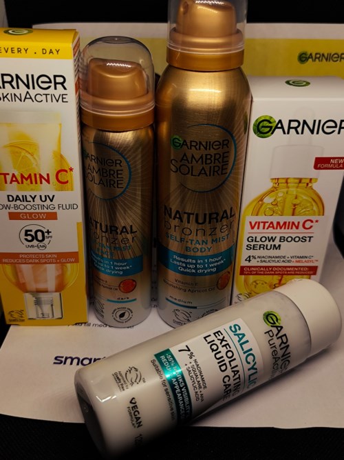 Garnier Ambre Solaire Natural Bronzer Self-Tan Mist Face on tuote, jota rakastan.. Tämä on ensimmäinen kerta, kun kokeilin tätä, enkä pettynyt. Ensimmäisellä kerralla tein virheen, ja seuraavana päivänä se katosi joiltakin alueilta, mutta oppiihan sitä. Mutta nyt en voi olla ilman sitä. Itse pakkaus näyttää niin ylelliseltä, ja rakastan, miltä se näyttää.. Ei ole mitään valittamista. Suosittelen tätä tuotetta todella vahvasti 😍😍 Arvostelu tehtiin Smartsonin toimeksiannosta - Testaajalle annettiin mahdollisuus kokeilla tuotetta ilmaiseksi.