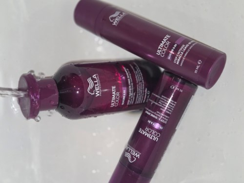 3. Viimeistele käsittely Wella Ultimate Color Conditionerilla tai Ultimate Color Miracle Maskilla, jotta hiukset saavat lisää kosteutta ja kiiltoa.