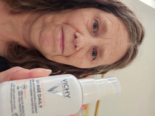 Vichy Capital Soleil UV-Age Daily SPF50+ on ultrakevyt aurinkovoide, joka vastustaa ryppyjä ja pigmenttiläiskiä sekä suojaa UVA- ja UVB-säteiltä. Sisältää ihoa hoitavia ainesosia, kuten ihon sävyä tasoittavaa niasiiniamidia, ihoa silottavia peptidejä sekä ihon suojamuuria vahvistavia probioottifraktioita ja Vichy-lähdevettä. Aurinkovoiteen uskomattoman kevyt koostumus imeytyy nopeasti ilman rasvaista tunnetta. Sopii herkälle ja aurinkoherkälle iholle.