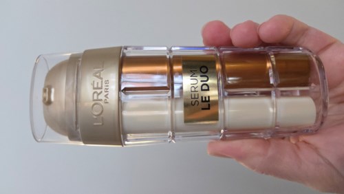 L´Oréal Paris Age Perfect Le Duo Age Defying anti-age seerumi sopii kaikille ihotyypeille, myös herkälle iholle. L’Oreal Paris on ensimmäistä kertaa yhdistänyt kahden seerumin tehokkuuden ikääntymisen merkkien vähentämiseksi. Nämä kaksi koostumusta on erotettu kahteen eri kammioon, jotta jokainen pisara säilyttäisi optimaalisen tuoreuden. Valkoisen seerumin ravitseva ja sametinpehmeä koostumus sisältää kollageenipeptidifraktioita ja se auttaa kiinteyttämään ihoa. Kevyt vaaleanruskea koostumus sisältää C- ja B3-vitamiineja* antamaan heleyttä ja tasoittamaan ihon sävyä. Kaksoispumppu annostelee vaikuttavat ainesosat optimaalisella pitoisuudella joka käyttökerralla. Kahden seerumin teho yhdessä tuotteessa vähentää ihon ikääntymisen merkkejä vain 7 päivässä*.