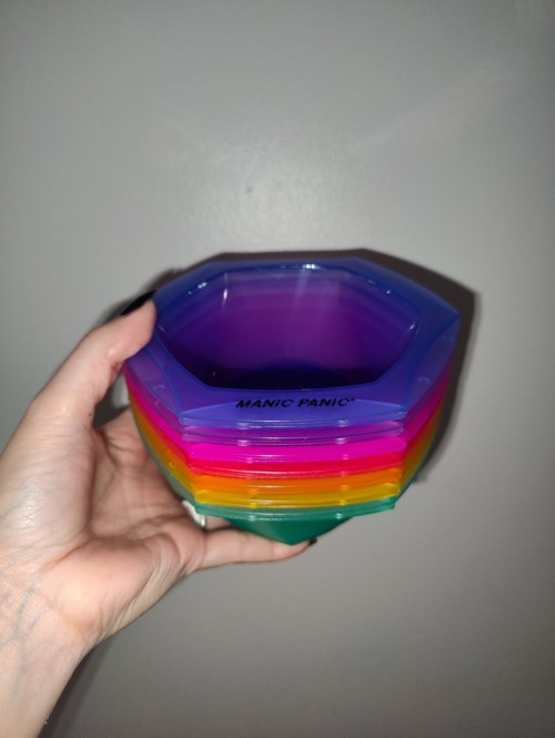 Meidän IHAN UUDET, ammattilaistason Mixabowl™ värjäyskulhot Manic Panic NYC:ltä ovat suunniteltu erityisesti hiusvärjäykseen. Saat kaikki sateenkaaren värit yhdessä setissä! Tarvitsetko tukevan kulhon värjäykseen? Näissä on kumipohja, joka pitää kulhon paikoillaan, kun sekoitat yhdellä kädellä. Riittävän suuri kaikkiin värisekoituksiisi ja turvallinen käyttää myös vaalennusaineiden kanssa!