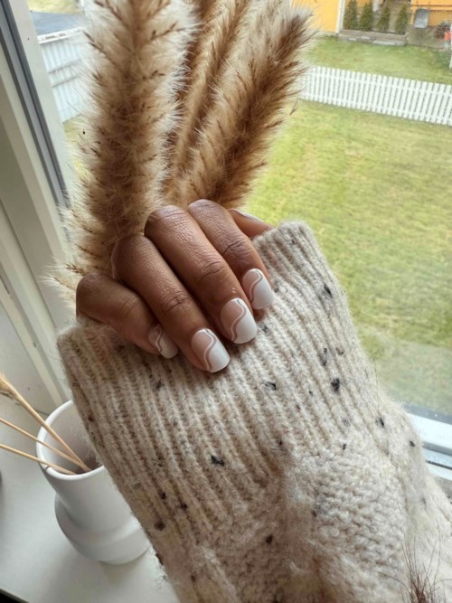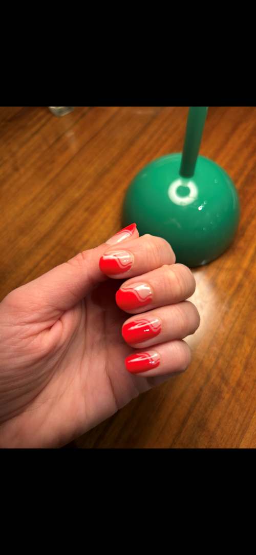 Ranskalainen manikyyri on klassikko, joka ei koskaan mene pois muodista. Swirl tuo ekstraa, joka vie tyylisi uudelle tasolle. Puolipeittävä, korallinpunainen kärki.