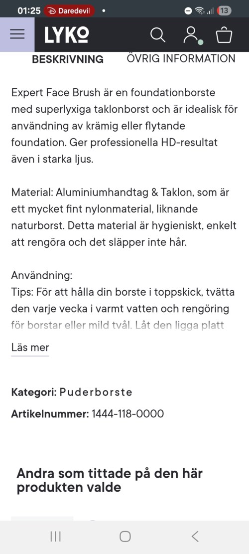 Meikkivoide oli raidallinen iholla ja itse harja oli karhea. Yritin erilaisia tekniikoita, mutta en saanut sitä toimimaan.511 näyttöä- Käyttäjän rooli: Lykon farmaseutti.Kommentti lisättiin 4 kuukautta sittenHei Linnea Erika😊 Kiitos, että käytit aikaa kirjoittaa arvostelu🤍 Onpa surullista lukea, että sivellin ei vastannut odotuksiasi, vaikka annoit sille todella rehellisen mahdollisuuden. Ymmärrämme, että on turhauttavaa, kun tulos ei ole toivottu – erityisesti kun kokeilet erilaisia tekniikoita etkä silti saa sitä toimimaan. Eri siveltimet voivat myös tuntua erilaisilta riippuen meikkivoiteesta, mutta tässä on vinkki, jota toivon, että voit kokeilla ja joka voisi tuntua paremmalta sinulle: lyko.com/sv/elf/e.l.f-cream---powder-face-brush Toivottavasti tämä voi tuntua paremmalta ja että sinulla on superihana päivä🌞
